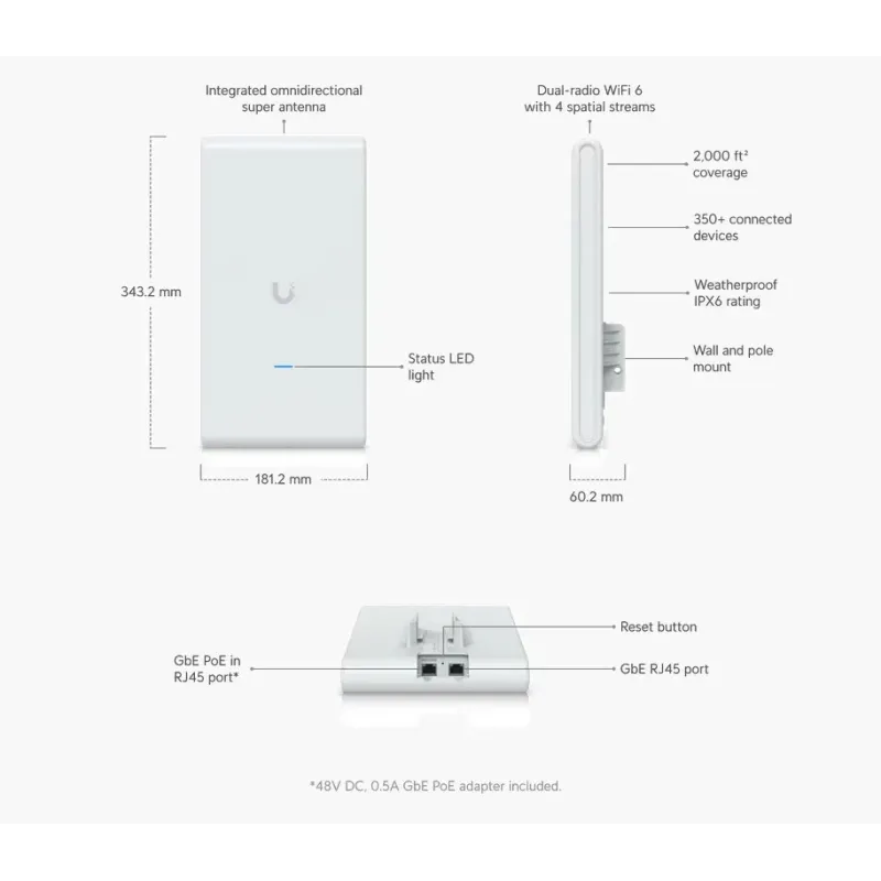 Overview | Ubiquiti U6-Mesh-Pro Access Point WiFi 6 Mesh 802.11ax 2x2 MU-MIMO รองรับ Channel-Width 160MHz bandwidth, ความเร็วสูงสุด 3Gbps พร้อม POE ในชุด