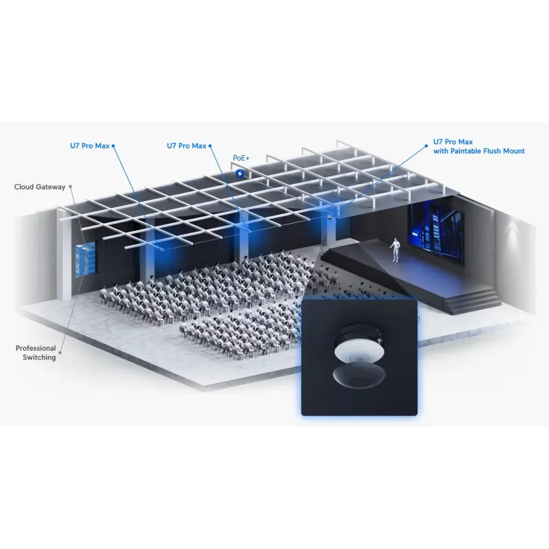 5Ubiquiti UniFi 7 Pro MAX U7-Pro-Max Access Point Wi-Fi 7 (BE) Access Point Tri-Band 2.4/5/6Gbps 4x4 MU-MIMO 14.98Gbps, Port LAN 2.5Gbps รองรับ 500+ Client