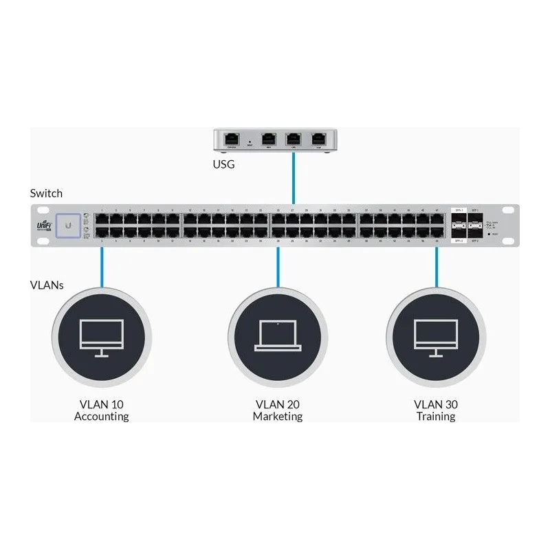 Ubiquiti Unifi Switch US-48-750W L2-Managed POE Switch 48 Port Gigabit รองรับ POE ทั้งแบบ Passive และ 802.3af/at กำลังไฟสูงสุด 34.2W ต่อ Port ควบคุมการทำงานผ่าน Unifi Software V4