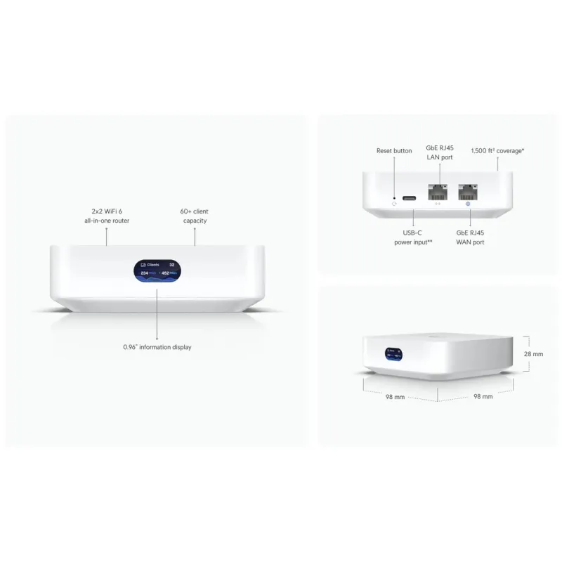 Powerfully compact UniFi Gateway and WiFi 6 access point that runs UniFi Network. Powers an entire network or simply meshes as an access point.