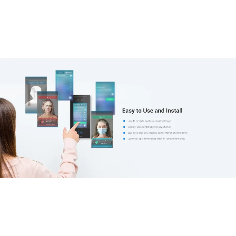 Overview | Akuvox E16C all-in-one IP Access Control Unit & SIP Intercom รองรับหน้าจอสัมผัส, การจดจำใบหน้า, บลูทูธ, RFID และ QR Code ช่วยเพิ่มความคล่องตัวในการใช้งานระบบไร้สัมผัสที่ปลอดภัยจาก COVID ทางเดินเข้าสู่อาคารที่มีปริมาณงานมากหรือวุ่นวาย พร้อม Module MD02 ตรวจจับอุณหภูมิ |
