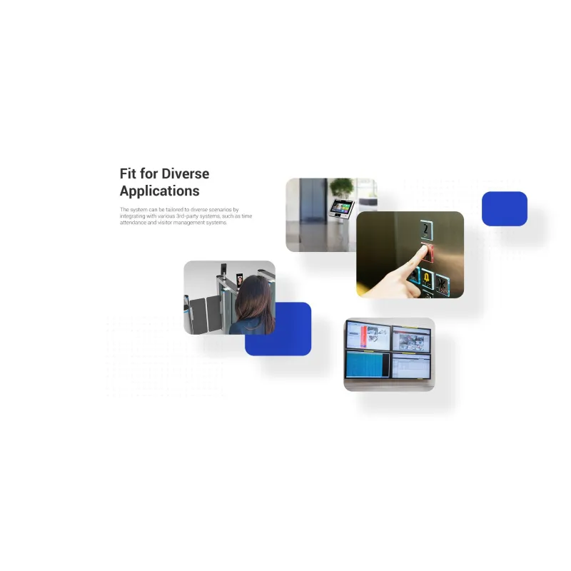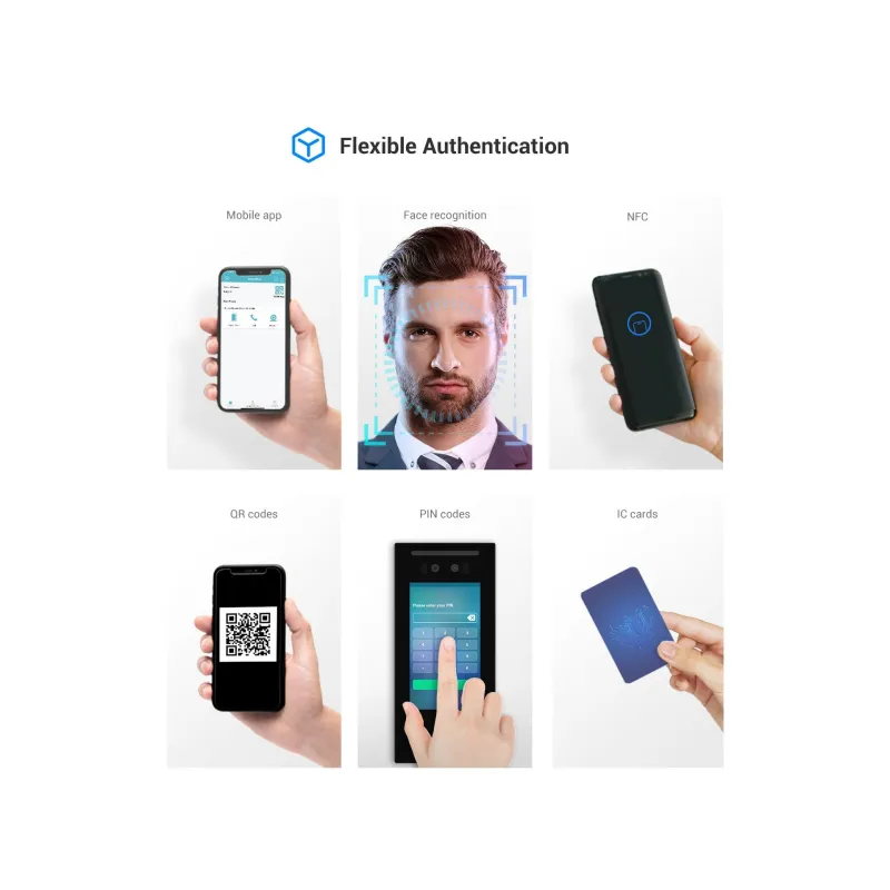 - Multiple secure authentication methods: face recognition, Bluetooth, RFID and QR code scanning, PIN Code