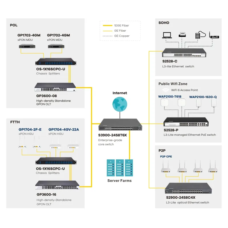 Overview | BDCom S2900-24T4X L3-lite Managed 24 Port Gigabit, 4 Port SFP+ 10 Gigabit รองรับ VLAN, STP, IGMP Snooping, Static route/RIP/OSPF, LACP, VRRP, 802.1x, Dual Stack |