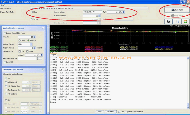 จากนั้นก็กด ปุ่ม Run IPerf โปรแกรมจะทำการส่ง Package จาก Client ไปยัง Server เป็นชุดๆ เมื่อ Run เสร็จจะแสดงค่า Summary เอาไว้ครับ