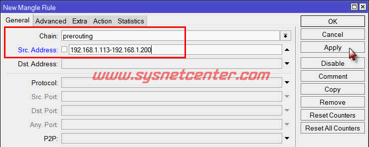 ที่ Mangle Rule เปลี่ยนจากกำหนดที่ Src.Address เป็น Src.Address List แทน