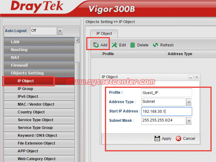 Menu Objects Setting --> IP Object --> Click [Add]