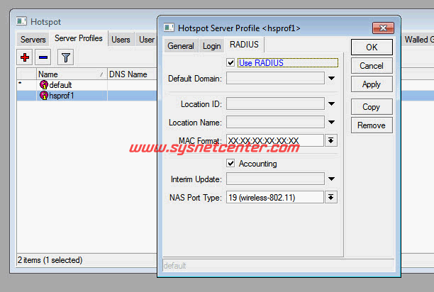 14. เข้าที่ Menu IP --> Hotspot เข้าที่ Tab Server Profiles ให้ Double Click เลือก Profile ตามที่ตั้งไว้ แล้วไปที่ Tab RADIUS