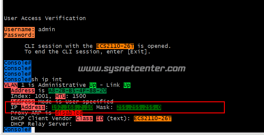 Console(config-if)#ip address 192.168.2.2 255.255.255.0