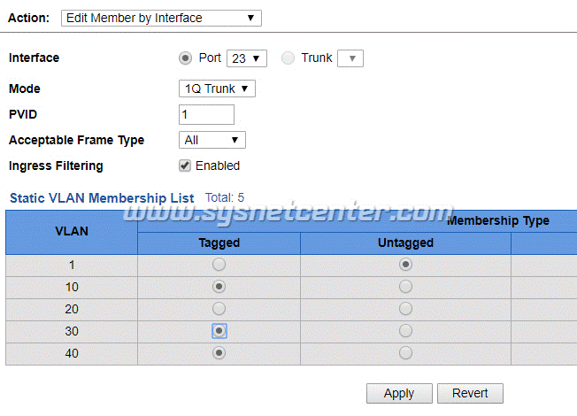 ในกรณีที่ต้องการให้ Port ไหน เป็น VLAN อะไรก็เลือกได้เลยครับ แต่อย่าลืมว่าเรา Tag VLAN อะไรมาบ้าง