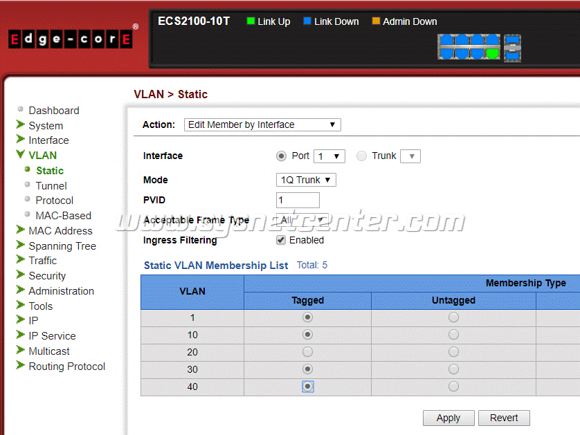 Menu VLAN --> Static --> Action: Edit Member by Interface