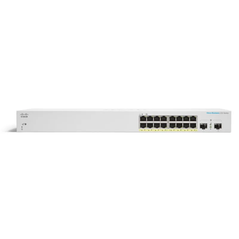 Cisco CBS220-16P-2G L2-Managed Gigabit POE Switch 16 Port Gigabit, 2 Port SFP จ่ายไฟ POE 802.3af/at 16 Port รวม 130W รองรับ VLAN, STP, ACL, QoS, IGMP Snooping, Static Routing