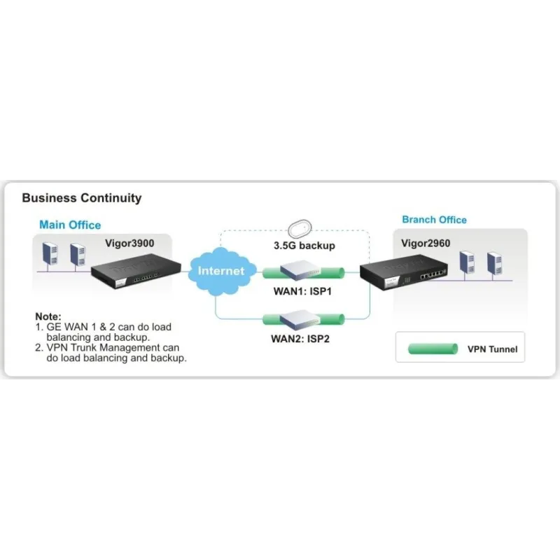 DrayTek Vigor2960 Gigabit Dual WAN Load-Balance VPN Router รวม Internet 2 คู่สาย VPN 200 Tunnels, 80,000 NAT Sessions, QOS, VLAN, รองรับ 3G/4G Modem