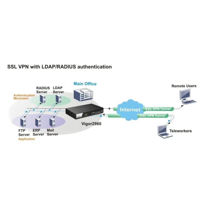 DrayTek Vigor2960 Dual WAN Load-balance VPN Router รวม Internet 2 คู่สาย VPN 200 Tunnels, 80,000 Session