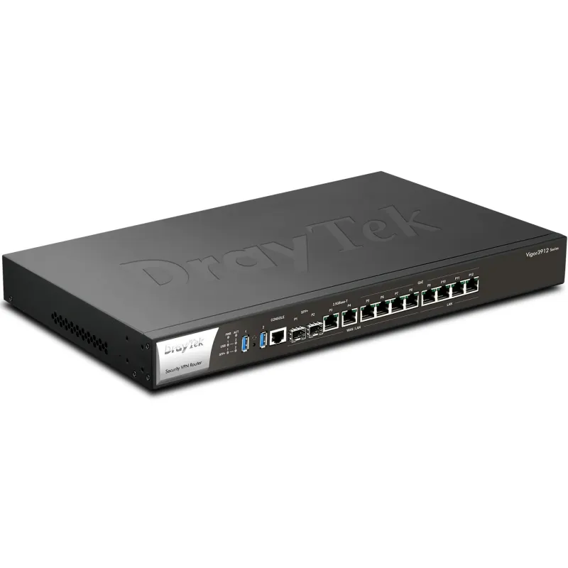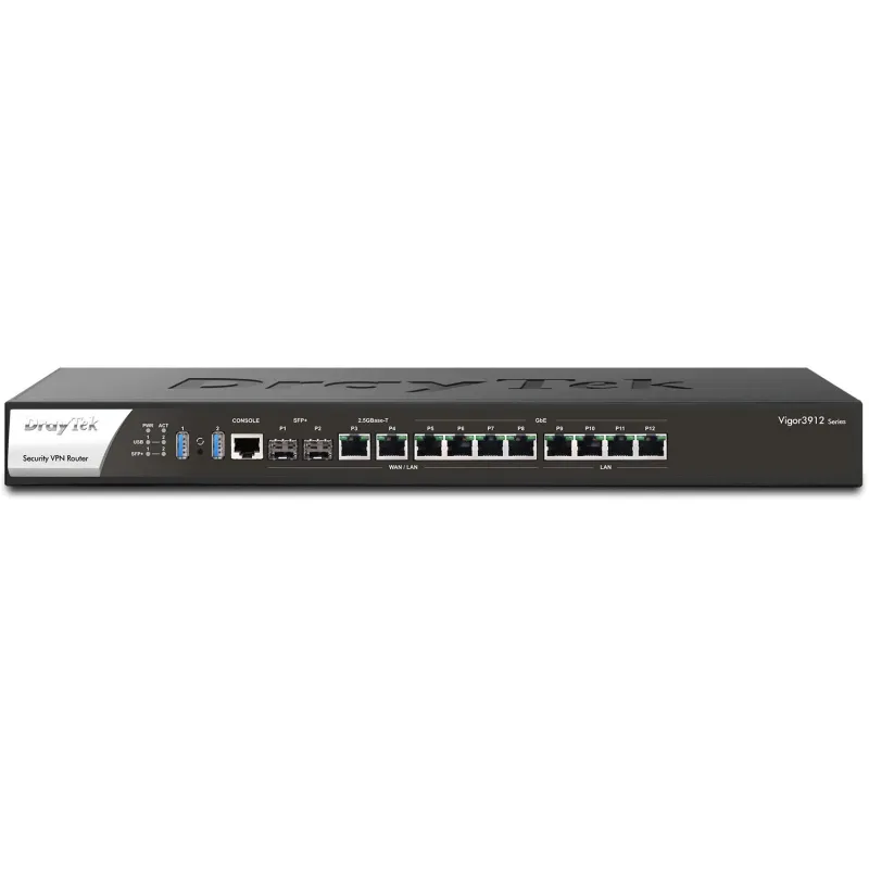 DrayTek Vigor3912 8-WAN Load Balance VPN Router, Port 2.5Gbps, SFP+, Internet 15.6G, 1,000,000 Session, VPN 500Tunnel, IPsec throughput 5.7Gbps, Hardware Acceleration ช่วยให้ VPN Throughput สูงกว่า 3 เท่า