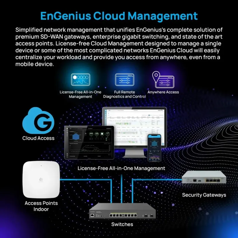 - Cloud Management: Free local and remote management via EnGenius Cloud.