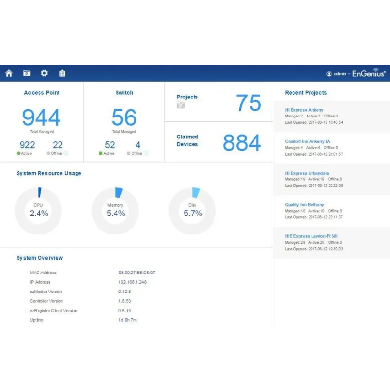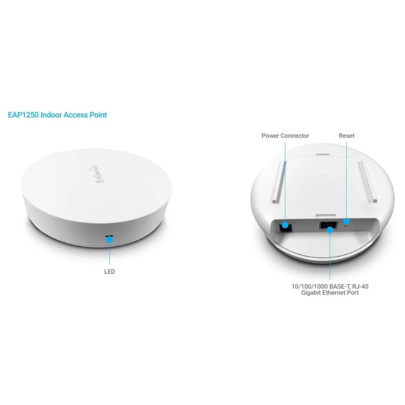 EnGenius EAP1250 Wireless Access Point มาตรฐาน AC MU-MIMO Wave 2 EnTurboDual-Radio 2.4/5GHz ความเร็วสูงสุด 867/400Mbps เสาแบบ Omni Gain ขยาย 5dBi กระจายสัญญาณรอบทิศทาง Port Lan ความเร็ว Gigabit รองรับ POE