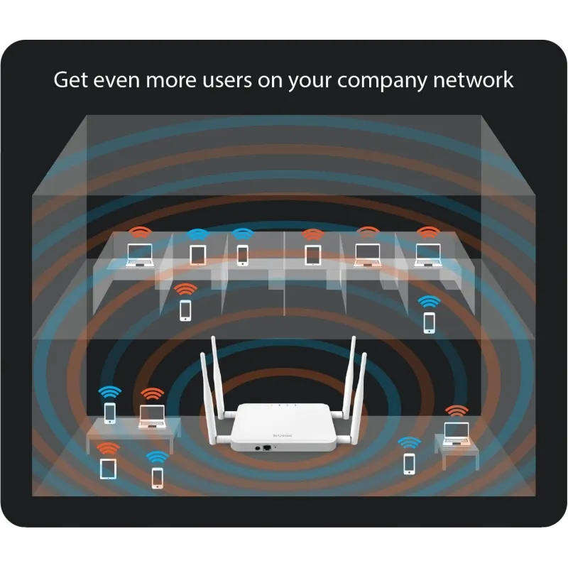 อุปกรณ์สื่อสารด้วยระบบไร้สาย Access Point มาตรฐาน IEEE802.11a/g/n/ac กระจายสัญญาณ 2 ย่านความถี่ Dual Band 2.4GHz และ 5GHz ความเร็วสูง 866 Mbps (5GHz) และ 300Mbps (2.4GHz) รองรับ Mode Band Steering, Fast Roaming
