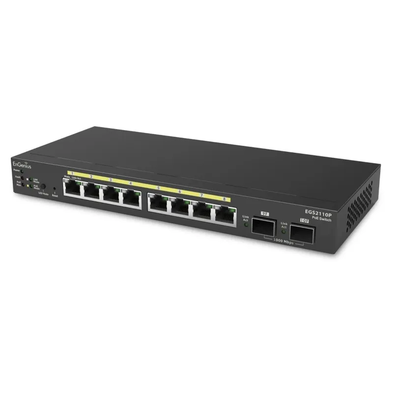 Engenius EGS2110P L2-Manage POE Switch 8 Port Gigabit รองรับ VLANs, QOS, ควบคุมผ่าน Browser จ่ายไฟ POE802.3af จ่ายไฟสูงสุด 61.6W