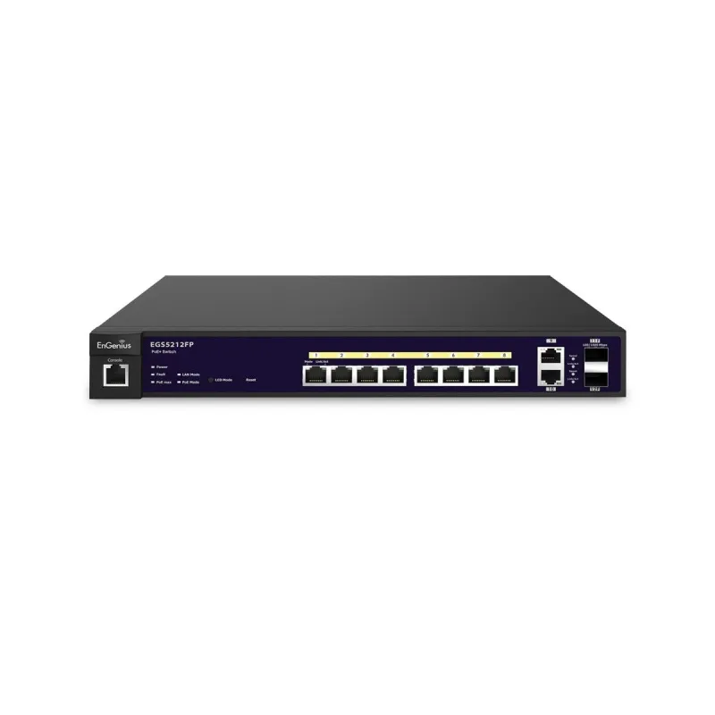 Engenius EGS5212FP L2-Manage POE Gigabit Switch 8 Port แบบ Rackmount, 2xSFP, 2xGigabit Uplink จ่ายไฟ POE 802.3af สูงสุด 130W รองรับ VLAN, QOS, Trunk, Mirroring Port