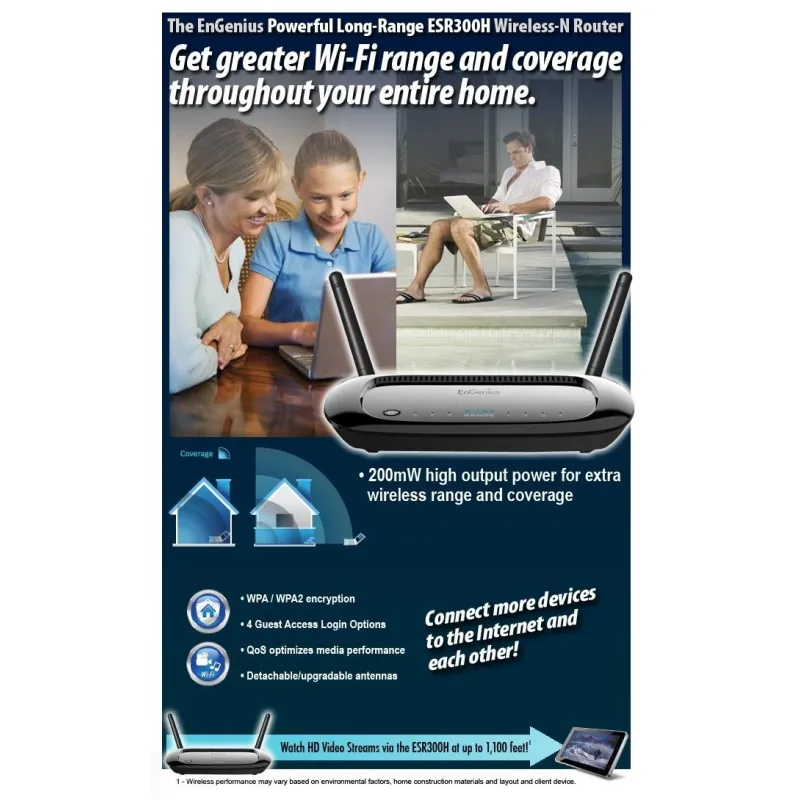 Engenius ESR-300H อุปกรณ์ Broadband Router ย่านความถี่ 2.4GHz ความเร็วสูงสุด 300Mbps พร้อม 4 Port 10/100Mbps เหมาะสำหรับสำนักงานที่พักอาศัยที่ต้องการความเร็ว Wireless สูงราคาประหยัด