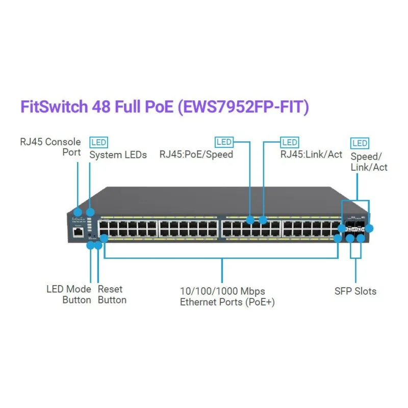 EWS7952FP-FIT Engenius FITSwitch Managed Gigabit 48-Port 740W PoE+ Switch, 4 SFP Port