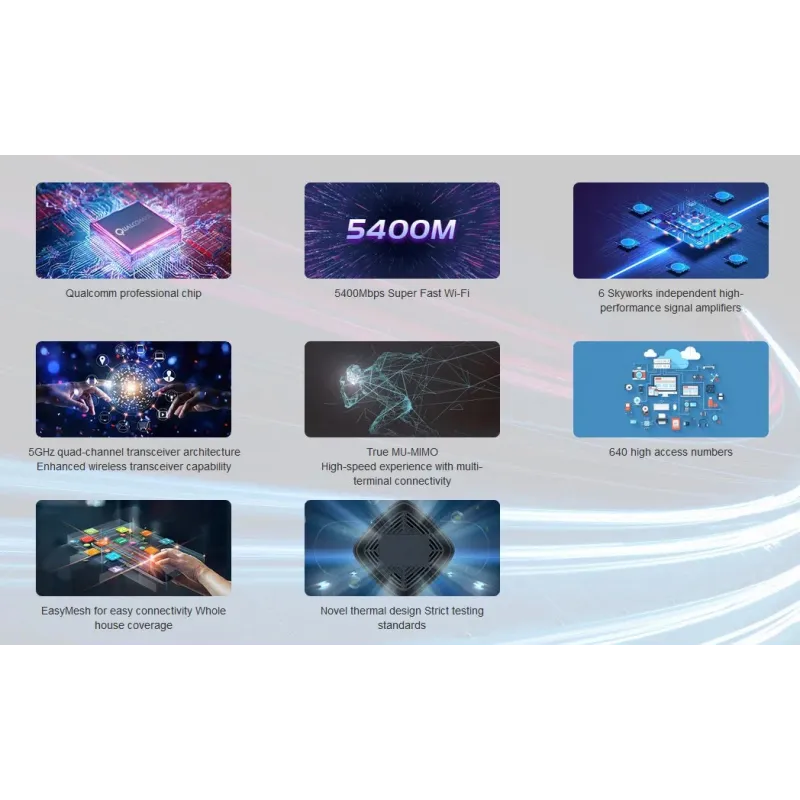 | wireless rate | Dual-frequency concurrency 5,378 Mbps 2.4 GHz: 574 Mbps & 5 GHz: 4,804 Mbps |