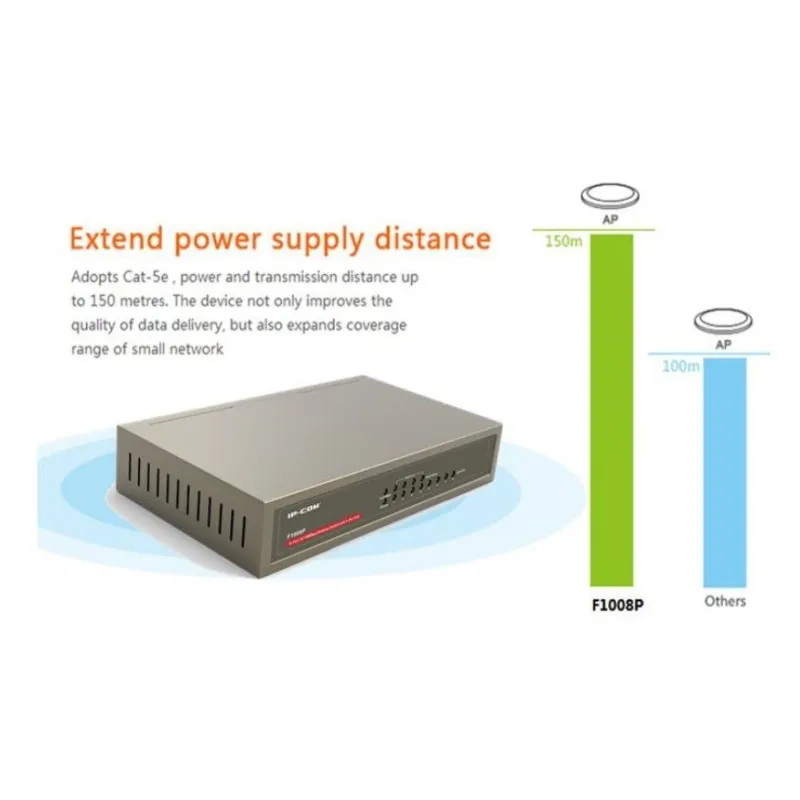 IP-COM F1008P POE Switch ขนาด 8 Port ความเร็ว10/100Mbps จ่ายไฟ POE 802.3at/af จำนวน 4 Port รวม 58W