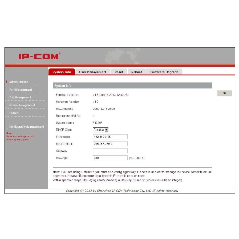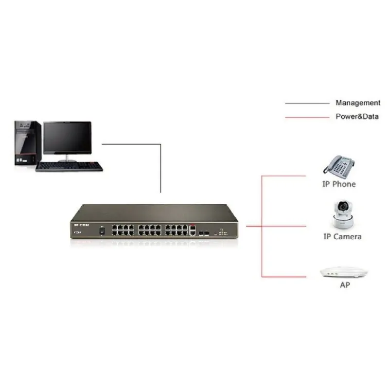 IP-COM F1226P L2-Managed POE Switch 24 Port ความเร็ว 10/100Mbps, 2 Port Gigabit จ่ายไฟ POE 802.3at/af 24 Port รวม 370W