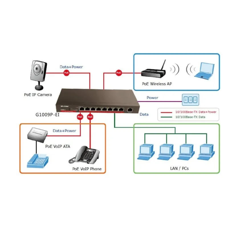 IP-COM G1009P-EI Gigabit POE Switch ขนาด 9 Port ความเร็ว Gigabit จ่ายไฟ POE มาตรฐาน 802.3at/af 8 Port รวม 121.2W