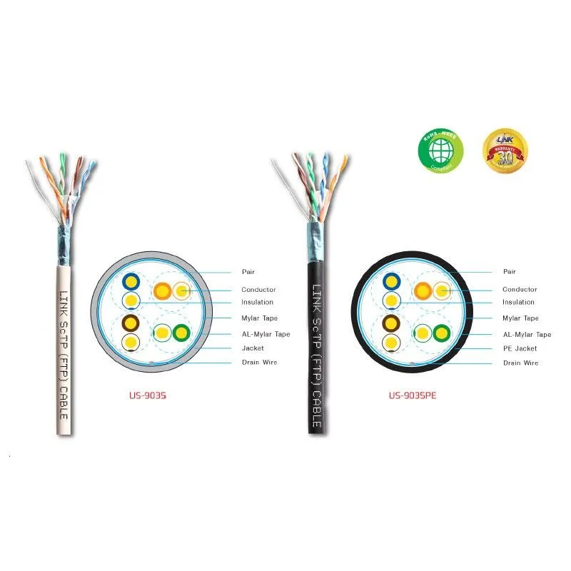 สายแลน cat5e Link US-9035PE สาย UTP มี Shield (FTP) Outdoor Single Jacket สีดำ 305M