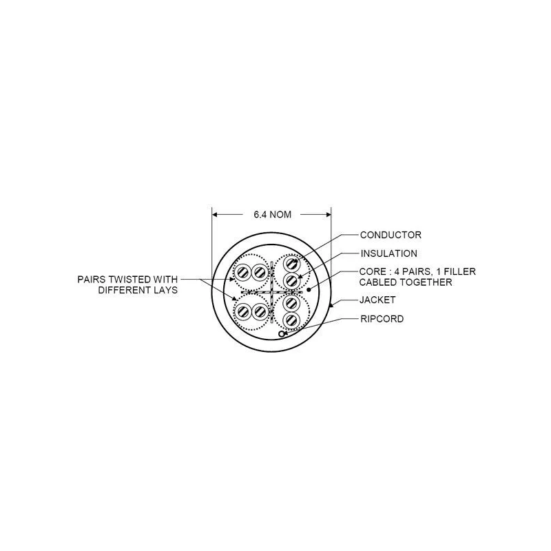 | ลักษณะของสายเป็นสายเคเบิลแบบ สายคู่บิดเกลียวไม่มีเปลือกห่อหุ้ม (UTP) จำนวน 4 คู่ |