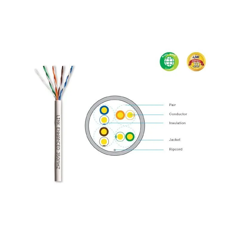 Link US-9025LSZH สายนำสัญญาณ UTP มาตรฐาน CAT5E (350 MHz) ใช้ภายในอาคาร สีขาว ลวดทองแดงขนาด 24AWG, รองรับความเร็ว 10/100/1000 Mbps ความยาว 305 เมตร/กล่อง