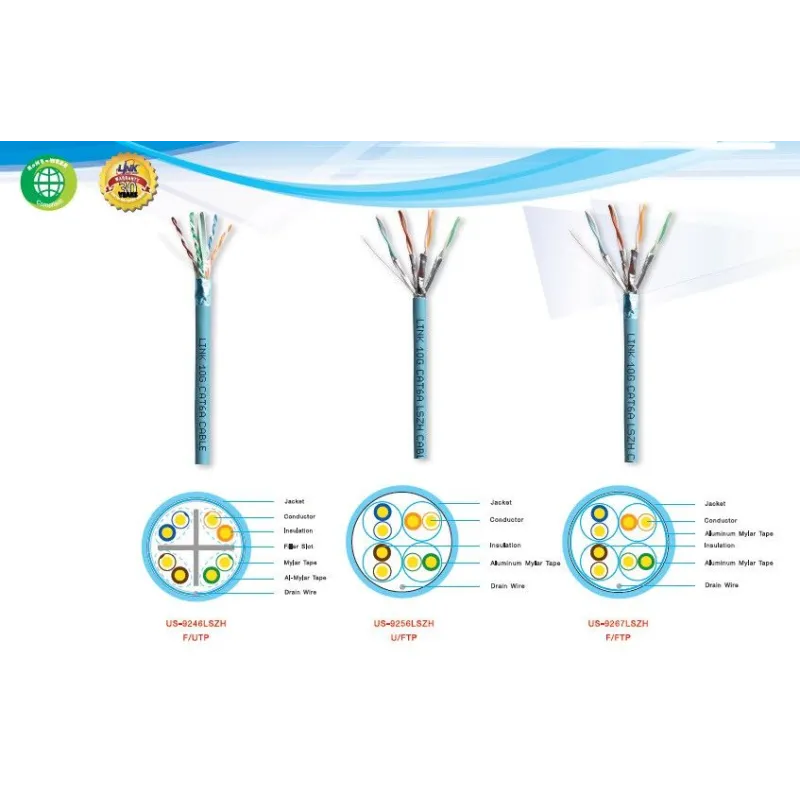 Overview | สายแลน Cat6A Link US-9256LSZH สาย STP แบบใช้งานภายในอาคารมี Shield ฟอยล์หุ้มภายในทุกคู่สายแยกจากกัน ป้องกันสัญญาณรบกวนเข้ามาในสายได้ดีกว่า มาตรฐานใหม่ Category 6A ส่งข้อมูลที่มีปริมาณและความละเอียดสูง รองรับความเร็ว 10 Gigabit Ethernet และปริมาณการรับส่งข้อมูล (Bandwidth) ที่ 500 MHz วัสดุเปลือกหุ้มเป็น LSZH *ไม่ติดไฟ มีสีฟ้าอ่อน, สายภายในเป็นลวดทองแดงขนาดตัวนำไฟฟ้า 23 AWG (Conductor Solid Bare Copper) สายมีความยาว 305 เมตร หรือ 1,000 ฟุต บรรจุแบบม้วน Roll แข็งแรงและสะดวกง่ายในการดึงสายใช้งาน |