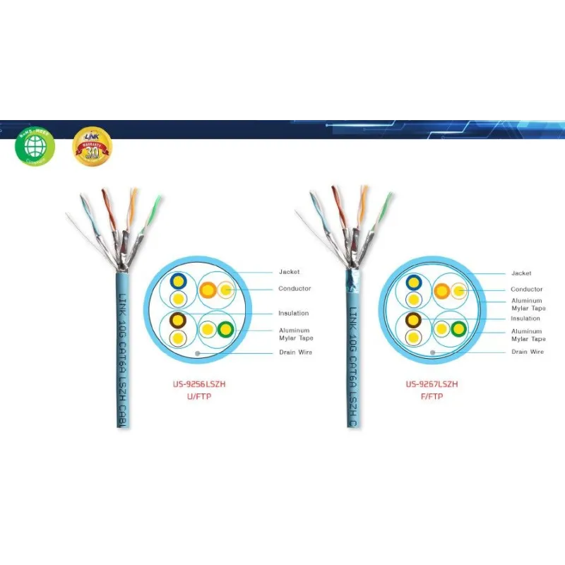Link US-9267LSZH CAT 6A F/FTP XG (500 MHz) CABLE, LSZH Indoor, 23 AWG, Aqua Blue Color 305 M./Roll รองรับความเร็ว 10Gbps