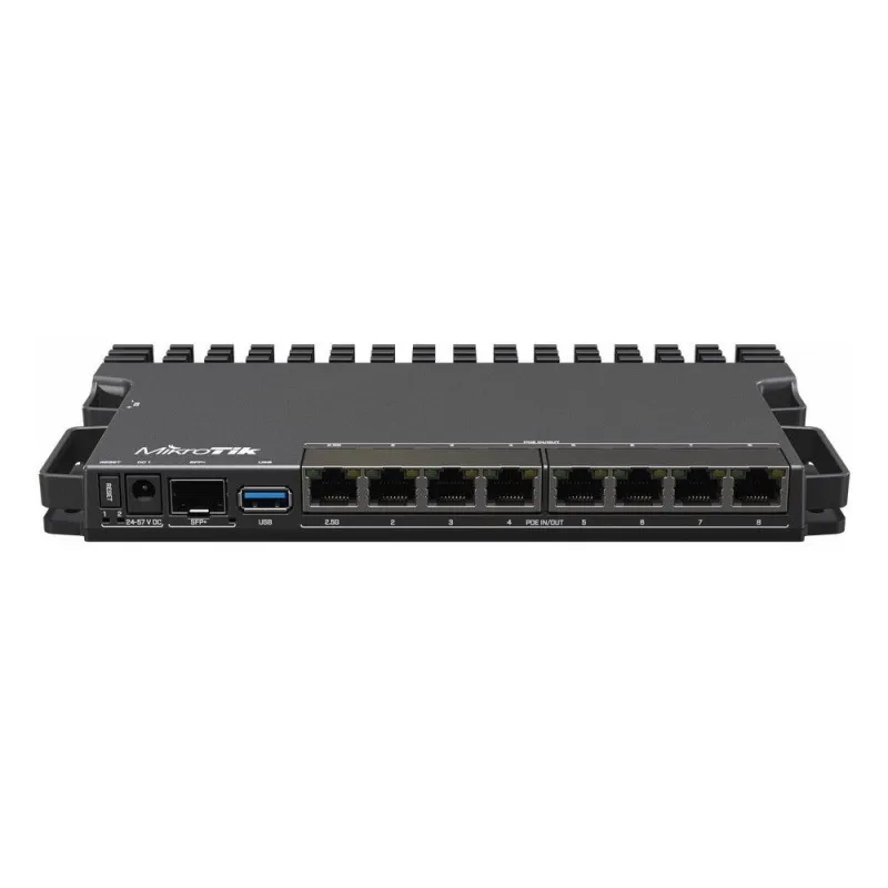 Mikrotik RB5009UPr+S+IN CPU Quad-core ARM 64bit 1.4GHz, RAM 1GB, ROM 1GB พร้อม 7 Port Gigabit, 1 Port ความเร็ว 2.5G, 1 Port SFP+ ความเร็ว 10Gbps, 1 Port USB 3.0 รองรับจ่ายไฟ POE Out 802.3af/at สูงสุด 130W
