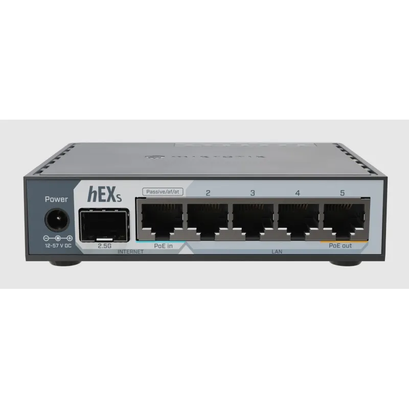 Overview | Mikrotik Router hEX S (E60iUG) 2025 CPU ARM 950MHz, Ram 512MB , Switch 5 port Gigabit, 1 SFP 2.5G รองรับ POE in มาตรฐาน 802.3af/at และ จ่ายไฟ POE out แบบ Passive ได้สูงถึง 57VDC |