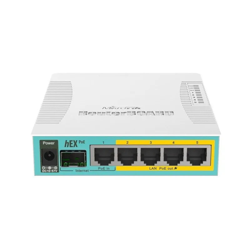 Overview | Mikrotik Router RB960PGS (hEX PoE) CPU 800MHz Ram 128MB, 5 Port Gigabit จ่ายไฟ POE 802.3af/at 4 Port, ROS LV.4 1 Port USB, 1 SFP พร้อม Adapter 24VDC |