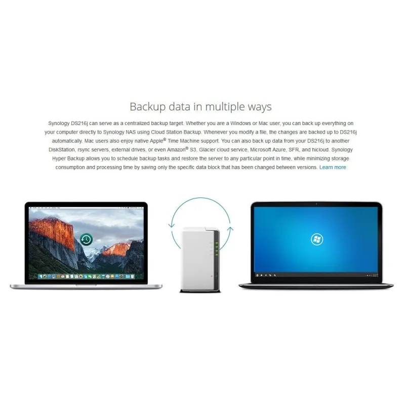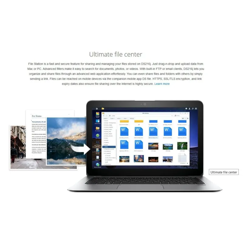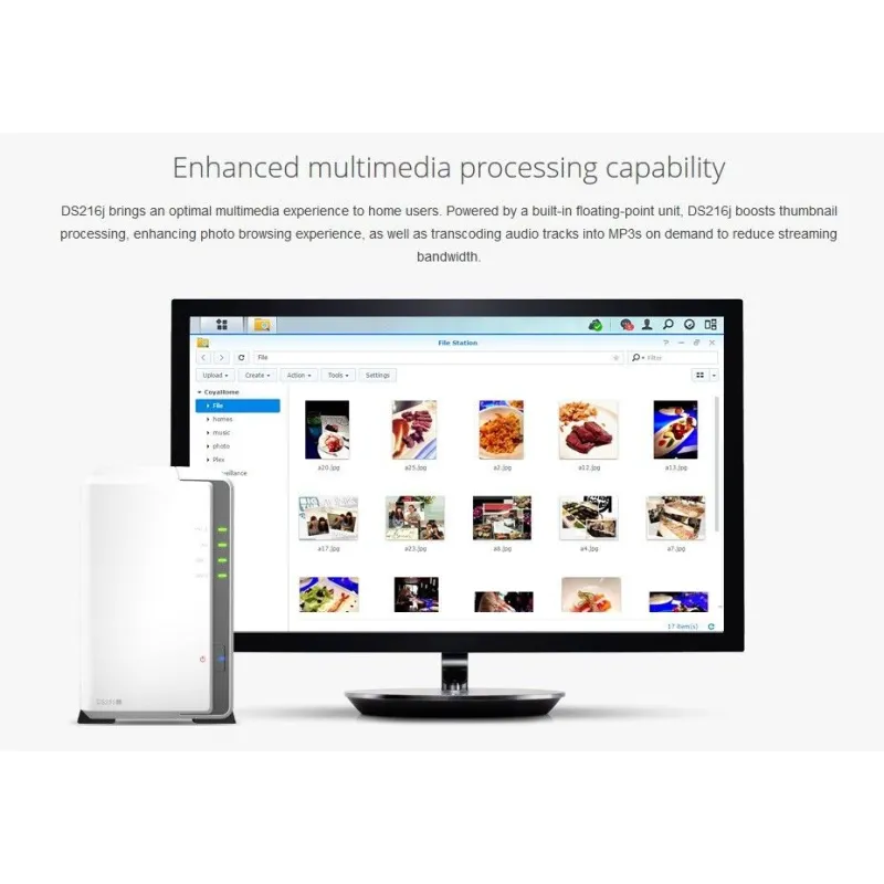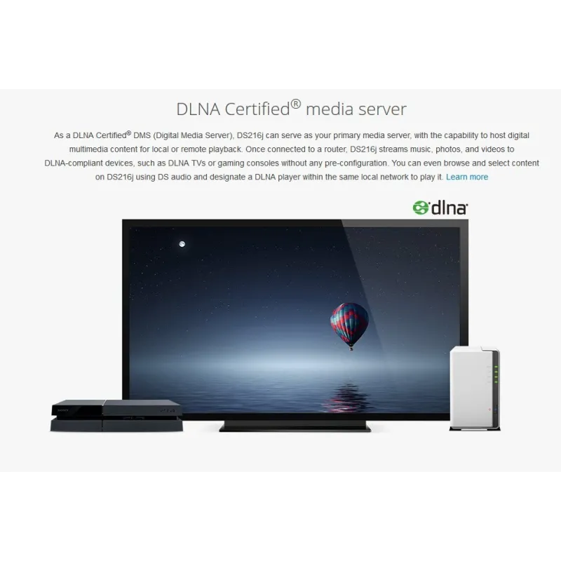 Synology DS216J อุปกรณ์ NAS จัดเก็บข้อมูล NAS ขนาด 2Bay ใส่ Harddisk ได้ 2 ลูก สูงสุด 16TB Port USB 3.0 สำหรับ Backup และแชร์์ข้อมูลผ่านระบบเครือข่าย รองรับ Application Download Bit, iTune Server, Media Server