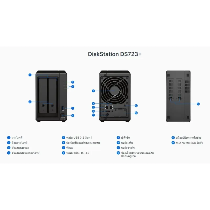 Overview | Synology DS723+ อุปกรณ์จัดเก็บข้อมูล NAS (Network Attatch Storage) ขนาด 2 Bay รองรับ Harddisk ได้ 2 ลูก สูงสุด 18TB (Not Include HDD) CPU AMD Ryzen R1600 2-Core 3.1GHz Ram 2GB DDR4 สำหรับ Backup ข้อมูลและแชร์์ข้อมูลผ่านระบบเครือข่าย รองรับการติดตั้ง Software ได้หลากหลายเช่น Active Backup for Business,Active Backup for Microsoft 365, Cloud Sync, Download Station, Hyper Backup, Log Center, RADIUS Server, Surveillance Station, Synology Drive Server, Synology High Availability, Web Station etc.. เหมาะสำหรับใช้เก็บข้อมูลในหน่วยงานหรือองค์กร ที่ต้องการอุปกรณ์ NAS ที่มีความเสถียรสูง | |
