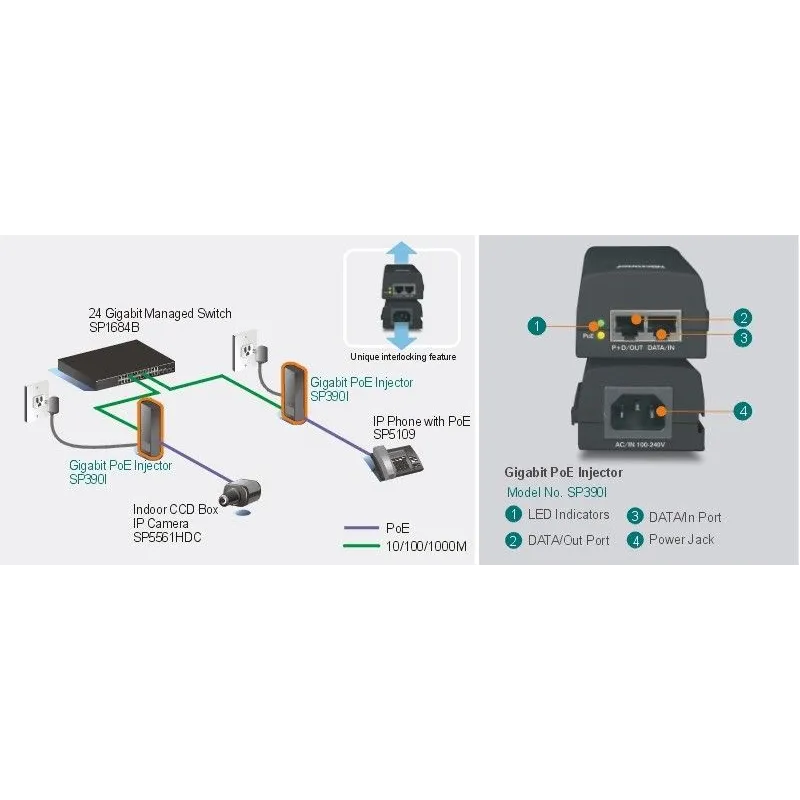 Overview | Micronet SP390I Power Over Ethernet (POE) อุปกรณ์จ่ายไฟไปกับสาย Lan มาตรฐาน IEEE 802.3at/af รองรับความเร็ว Gigabit 1000Mbps กำลังไฟสูงสุด 30W สามารถใช้ร่วมกับอุปกรณ์เครือข่ายที่รองรับมาตรฐาน 802.3at/af ได้ทุกรุ่น ทุกยี่ห้อ |