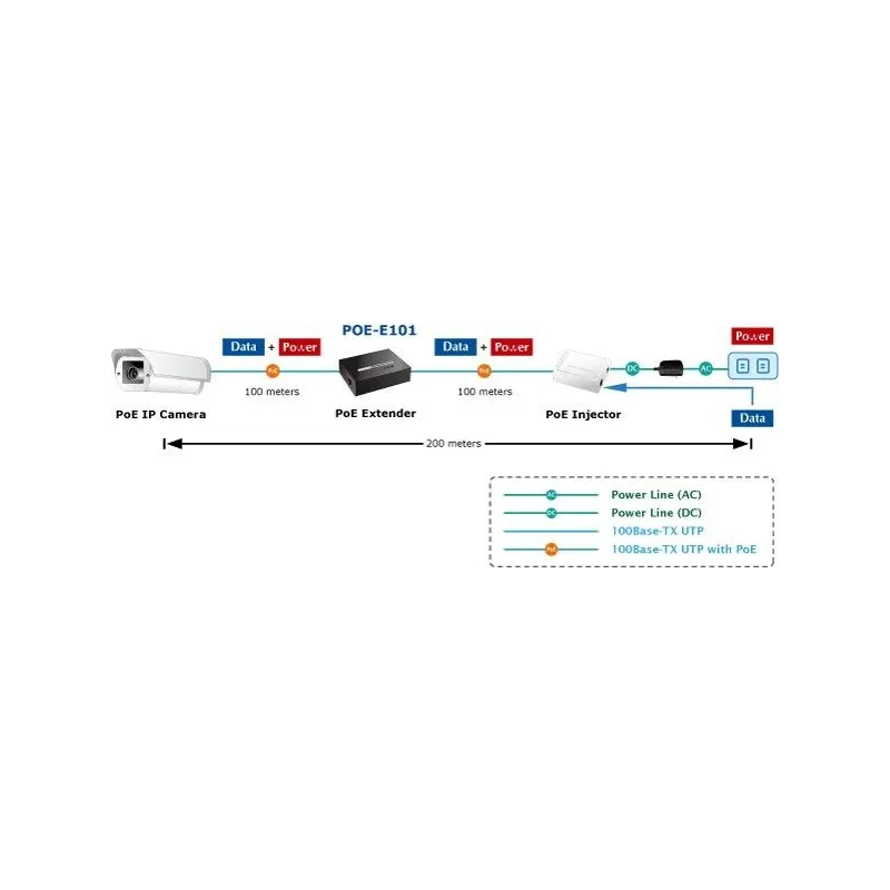 Overview | Planet POE-E101 อุปกรณ์ POE Extender เพื่อเพิ่มระยะสาย Lan พร้อมไฟ POE มาตรฐาน 802.3af ไปกับสาย ได้ อีก 100 เมตร โดยไม่ต้องต่อปลั๊กไฟ และสามารถ ต่อพ่วงอนุกรมได้สูงสุด 3 ตัว (ได้ระยะ 300 เมตร) ความเร็ว 10/100Mbps |