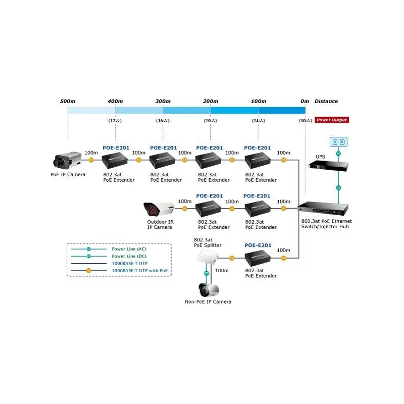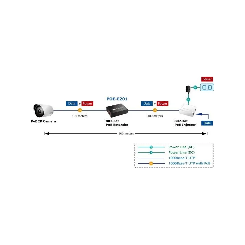 Overview | Planet POE-E201 อุปกรณ์ POE Extender เพื่อเพิ่มระยะสาย Lan พร้อมไฟ POE มาตรฐาน 802.3at ไปกับสาย ได้อีก 100 เมตร โดยไม่ต้องต่อปลั๊กไฟ (กำลังไฟไฟ้า WATT จะลดลงตามระยะทาง) และ สามารถ ต่อพ่วงอนุกรมได้สูงสุด 4 ตัว รวมได้ระยะ 400 เมตร ความเร็ว Gigabit 10/100/1000Mbps |