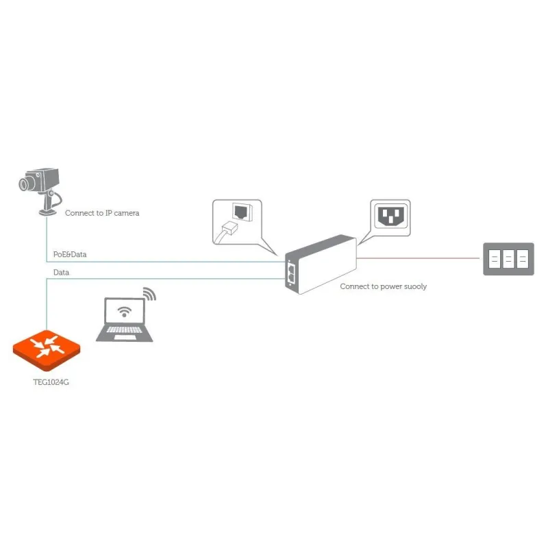 Tenda PoE15F POE Power Over Ethernet Injector 802.3af 15.4W 100Mbps สำหรับ IP-Camera