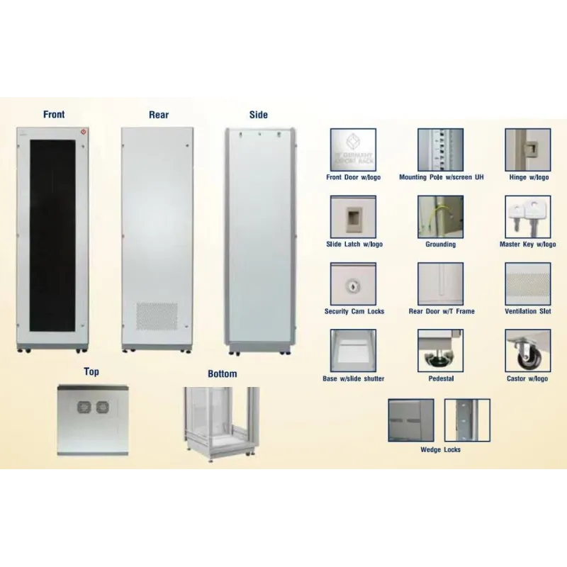 - ตู้ Rack เป็นระบบ Modular Knock Down เพื่อความสะดวกในการขนส่ง ทุกชิ้นส่วนผลิตด้วยความประณีต สามารถถอด แยกประกอบได้โดยสะดวกและมีคู่มือ VCD แสดงการประกอบทุกขั้นตอน