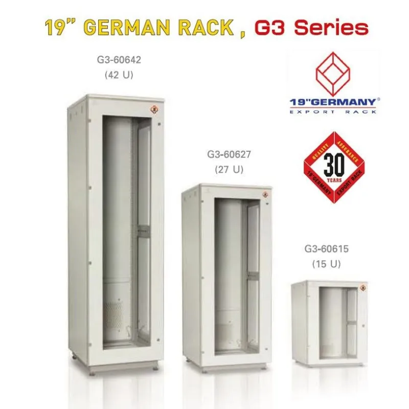 - 19" Germany Export Rack G3 Series ผลิต (Manufacture) และจัดจำหน่าย (Distribution) โดยบริษัทที่ได้รับการรับรองมาตรฐาน มอก./ISO 9001 : 2000