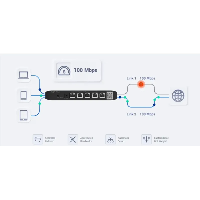 Reyee RG-EG105G-V3 Cloud Managed Router 2 Wan, 4 Port Gigabit รองรับ 100 Concurrent users, Throughput 600Mbps, VPN, ทำ Captive Portal, Ruijie Cloud