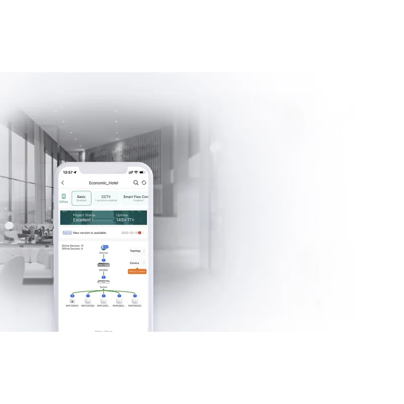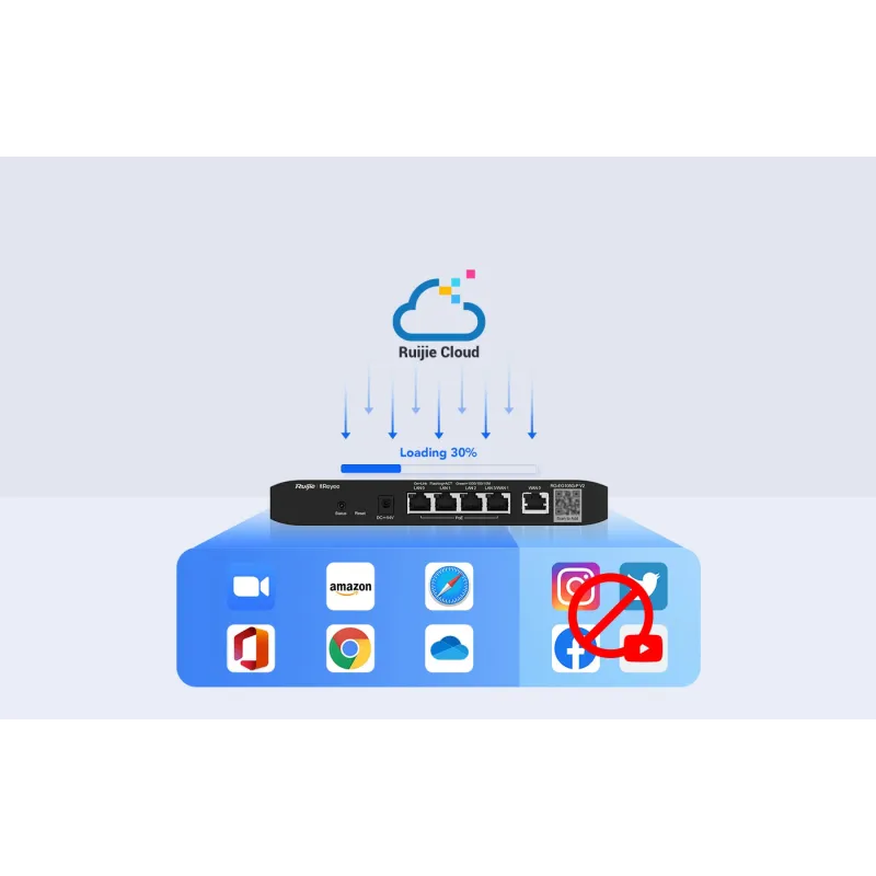 - รองรับการจัดการ Config ผ่าน Cloud Tunnel เสมือน Login เข้าหน้า Config ที่ Site งาน รวมถึง Monitor อุปกรณ์ ผ่าน Ruijie Cloud ทั้งบน Browser และ App ติดตั้งใน Smartphone