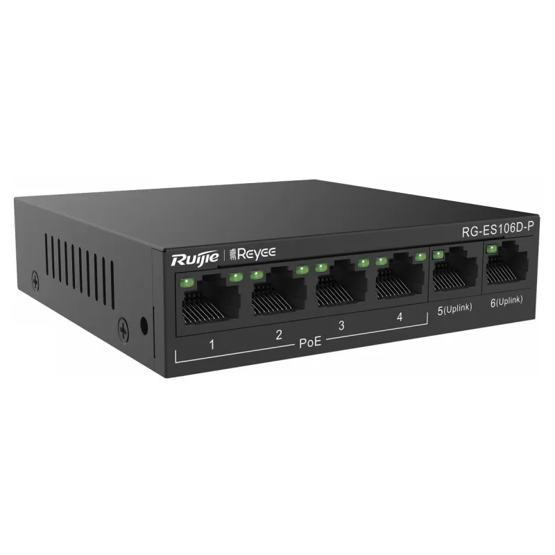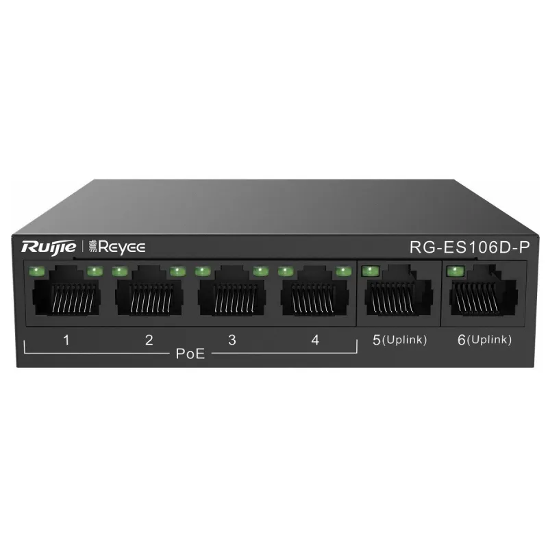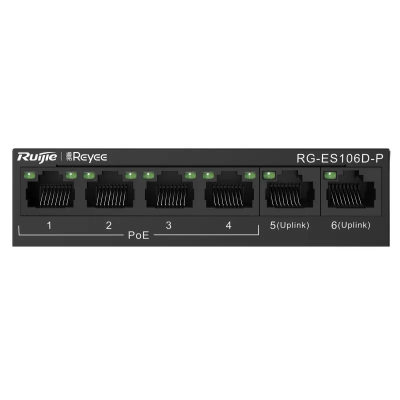 Overview | Reyee RG-ES106D-P POE Switch 6 Port ความเร็ว 10/100 จ่ายไฟมาตรฐาน 802.3af/at 4 Port 58W, Uplink 2 Port เคสเหล็ก ทนทาน |