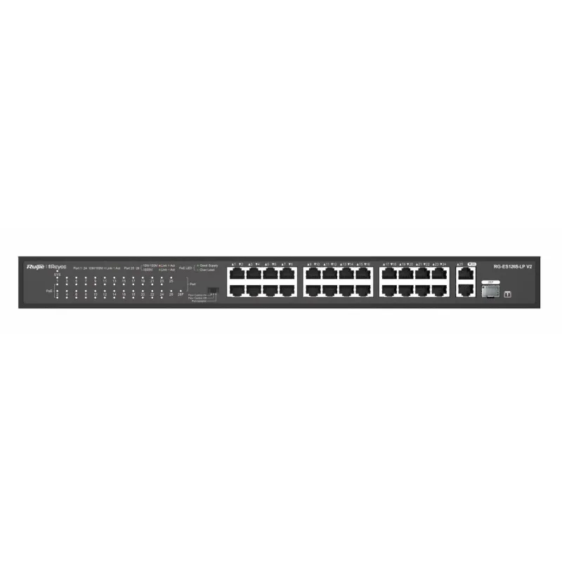 Overview | Reyee RG-ES126S-LP V2 100Mbps POE Switch 26 Port ความเร็ว 10/100Mbps จ่ายไฟมาตรฐาน 802.3af/at 24 Port 370W, Uplink 2 Port Gigabit |