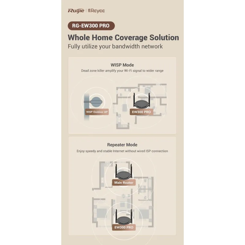 RG-EW300 PRO Reyee 300Mbps Wireless Smart Router สำหรับทำ Repeater, WISP
